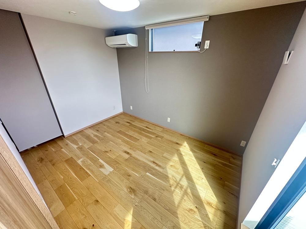 陽光が心地よく差し込む、穏やかな洋室。木の質感を活かしたフローリングと、落ち着いたアクセントクロスの対比が上質な空間を演出します。自分だけの書斎や趣味の部屋、お子様部屋など多目的に活用できる一室です。