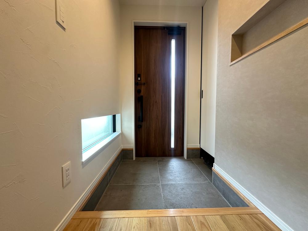 開放感と利便性を備えた玄関。 奥行きを感じさせるホールには、小物のディスプレイを楽しめるニッチや大型収納を配置。地窓が足元を明るく照らし、夜間や雨の日でも心地よい空間が家族やゲストを迎え入れます。
