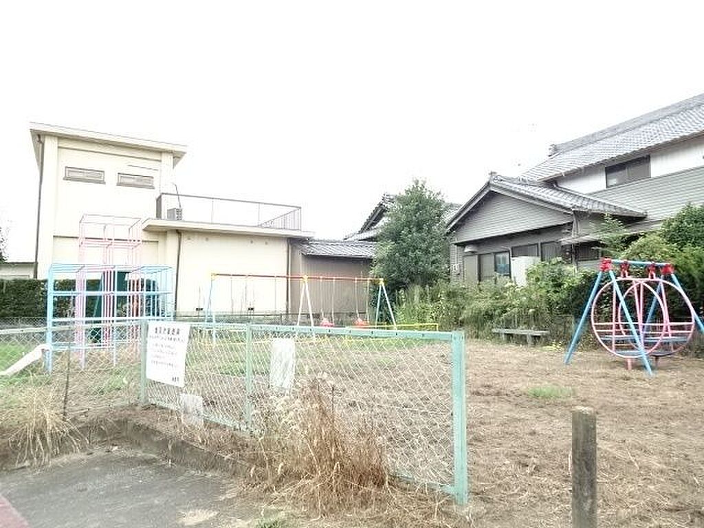 「鷹居児童遊園」お子様が遊べる遊具や広場がありベンチから敷地全体が見守れるちょうどいい広さの公園です。 120m