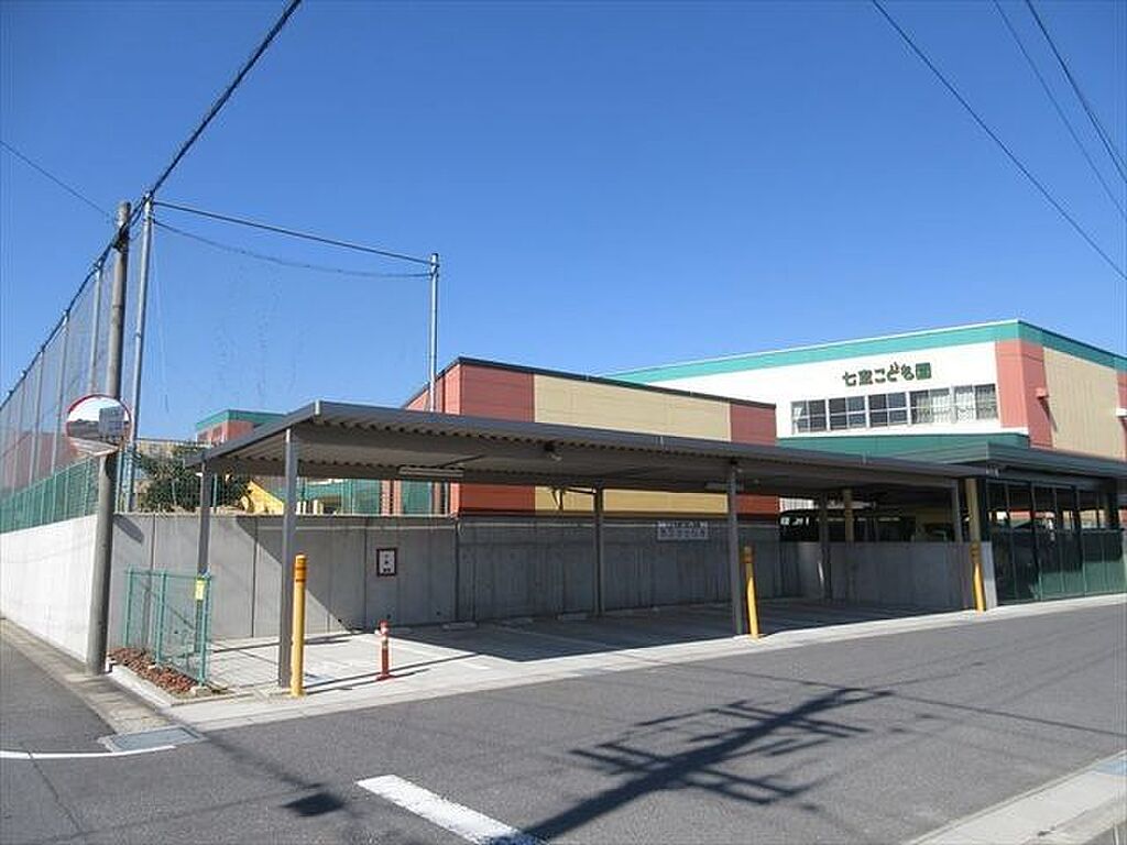 「七宝こども園」 園目標 「ありがとう、ごめんなさいが言える子に」。周りは田んぼに囲まれたのどかな場所で、広々とした園庭とまるで絵本の世界のように可愛い園内です。 1100m