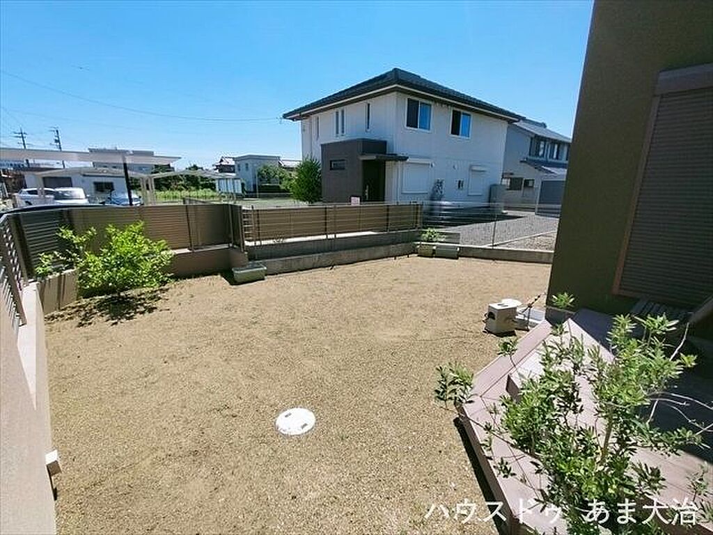 前面にさえぎる建物がないため日当たり良好な南向きのお庭はゆとりの広さ。お友達を読んでバーベキューも楽しめそうですね。