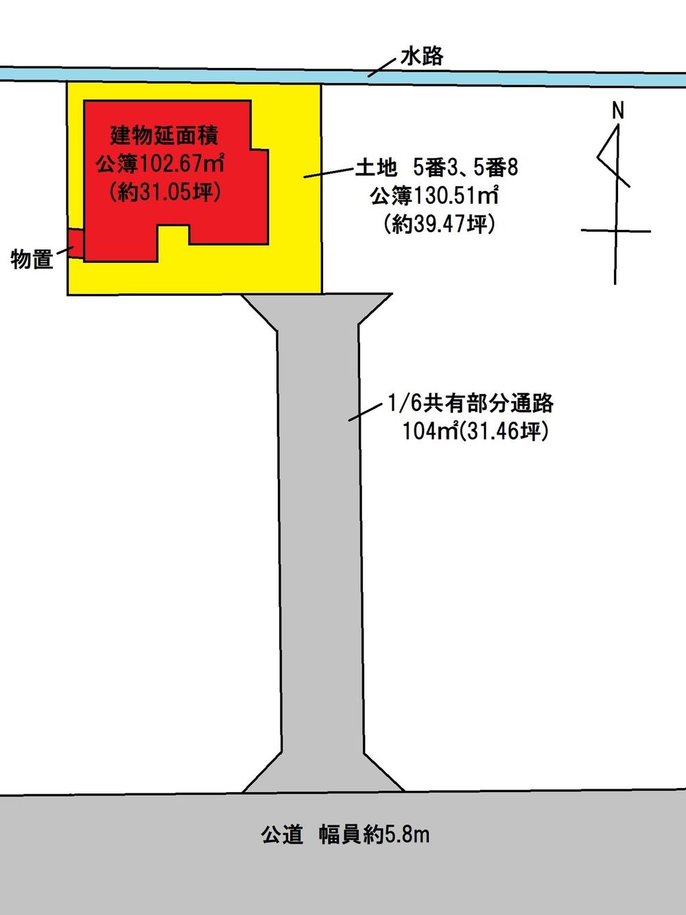 | 土地権利 | 所有権 | 私道負担・道路 | 共有持分104㎡×(17.3/104)、南3.8m幅(接道幅3.3m) | ||
