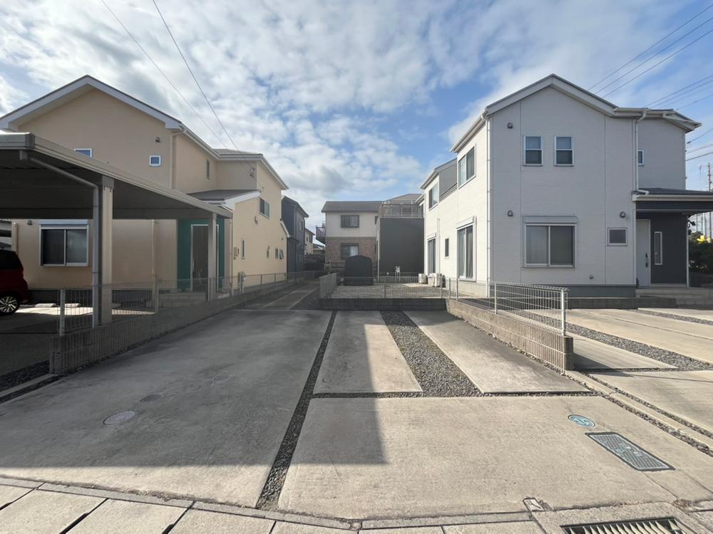 【駐車場2台完備】平坦な地勢で出し入れもスムーズ。前面道路は交通量が少ない閑静な住宅地のため、運転が苦手な方も安心して駐車できます。毎日の車移動をストレスフリーにする、ゆとりある住環境が魅力です。