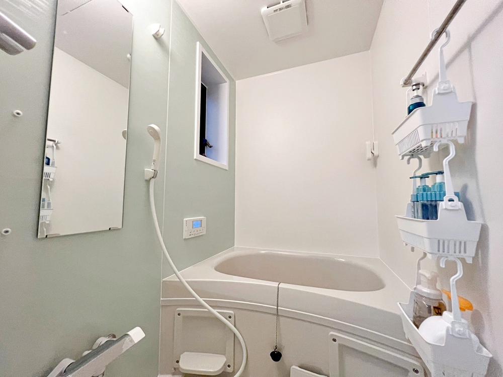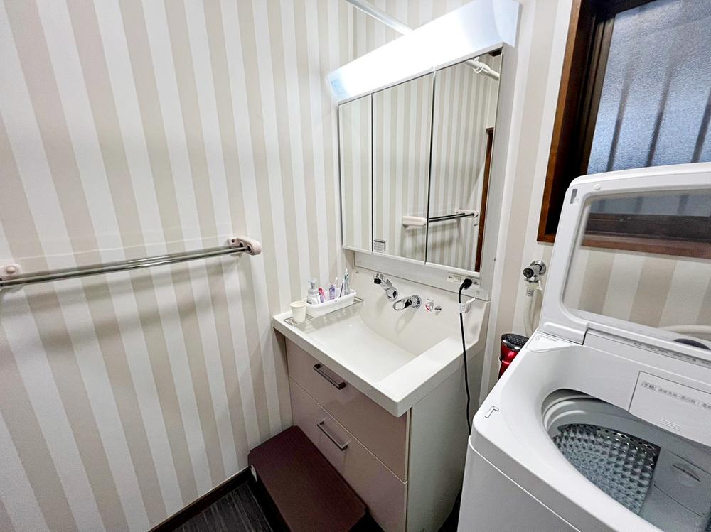 【洗面所】三面鏡にハンドシャワー付で使いやすい洗面台です。洗面脱衣室もゆったりの広さ。身支度に便利なだけでなく収納にも優れています。お出かけの前に身だしなみを整えるために毎朝使用できます!