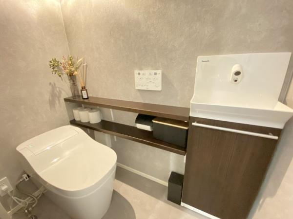 衛生的かつお子様の手洗いもしやすい手洗器付き◎収納棚には掃除用具などをすっきりとしまえます!
