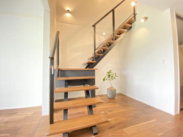 リビング階段は壁で仕切らずに階段がリビングと一体化しているため空間に広がりを感じさせ、開放的な雰囲気を演出します!