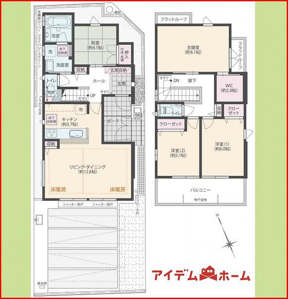 | 設備・サービス | 床暖房、フローリング、屋上・ルーフバルコニー、床下収納、下水、公営水道、洗濯機置場あり、温水洗浄便座、ルーフバルコニー、洗面所独立、バリアフリー、浴室暖房、ウォークインクローゼット、都市ガス、浴室乾燥機、追焚機能、シャワー付洗面化粧台 | ||||
