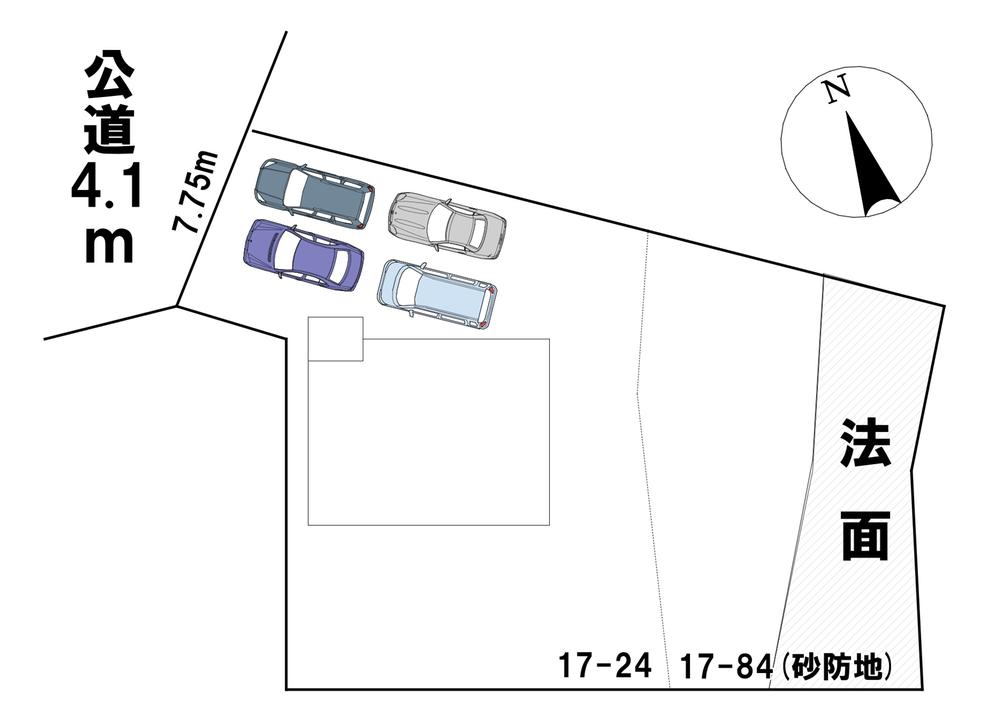 | 土地権利 | 所有権 | 私道負担・道路 | 無、北西4.1m幅(接道幅7.7m) | ||