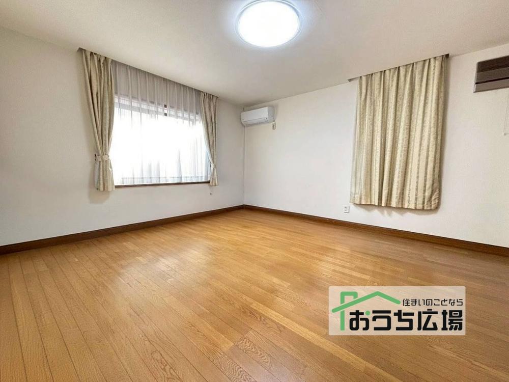 【洋室】2階にある約14.5帖の洋室です。こちらのお部屋はご夫婦の主寝室としてはもちろん、ご家族でゆったりとくつろぐリビング空間としてもお使いいただけます。扉が二つありゆくゆく二部屋としても使えますね