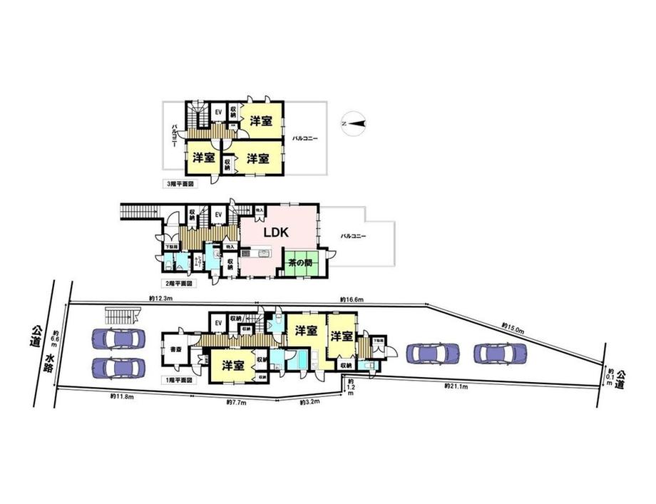 | 土地権利 | 所有権 | 私道負担・道路 | 無、北5.2m幅、南3.6m幅 | ||