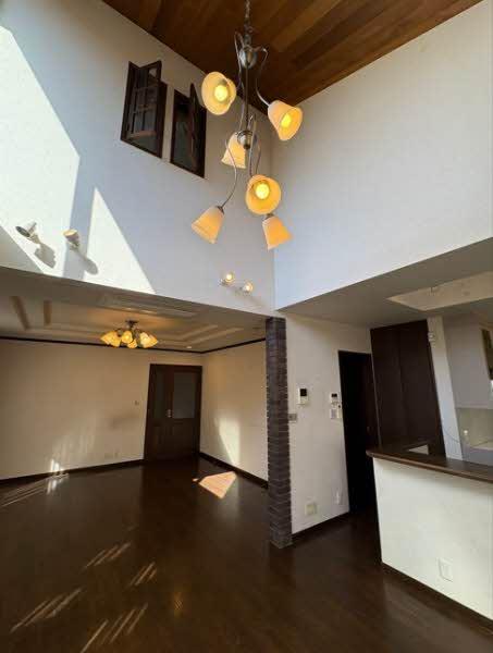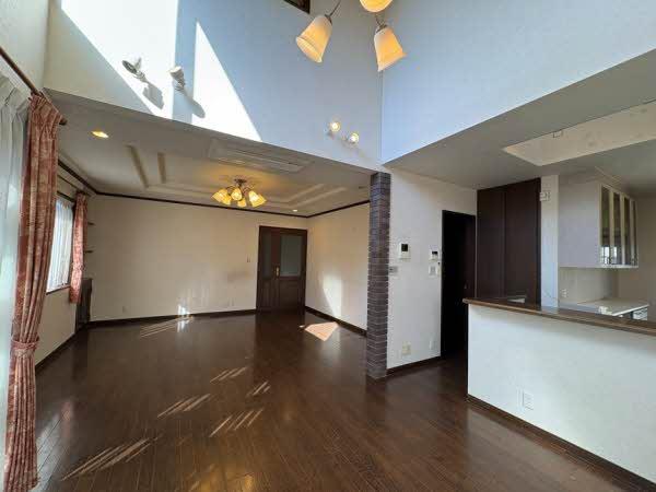 南西側に開口部を設けたLDK。ダイニング上は吹き抜けで、室内に採光を確保。リビング・ダイニングが一体となった空間設計で、明るく開放的な居住空間となっています。