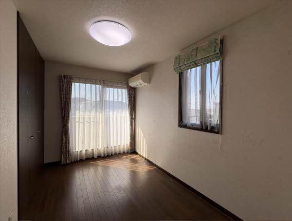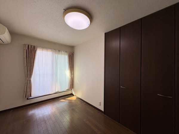 2階西側に位置する洋室。角部屋のため2面採光を確保し、室内の明るさと通風に対応。収納スペースも完備しており、居住空間をすっきりと保てます。