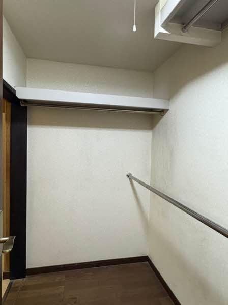 東側の洋室に設置されたクローゼット。ハンガーポールと棚を備えており、衣類や小物を整理しやすく、居室内の収納効率を高める構造です。