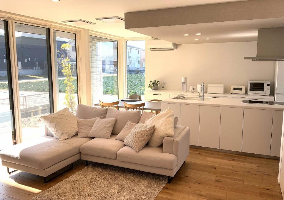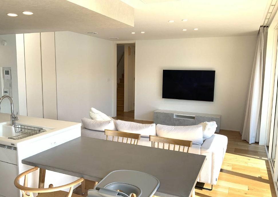 【LDK:24.5帖】広くゆったりと家族揃って寛げるLDK。南面リビングで、明るく太陽の光が自然と射し込むあたたかな空間です。毎日の始まりと終わりをここで迎える大切なリビングは心地良い空気感です。