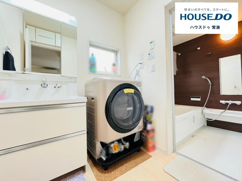 白を基調とした清潔感ある洗面所です。便利なシャワー付き洗面台と室内洗濯機置き場を完備しており、忙しい毎日の家事もスムーズに。使い勝手の良い設備で快適な生活をサポートします。