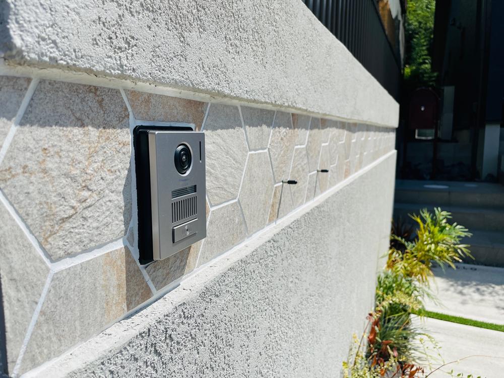 表札とインターホンをとりつける外壁にもちょっとおしゃれなヘキサゴンタイルが使用されています(2025年11月撮影)