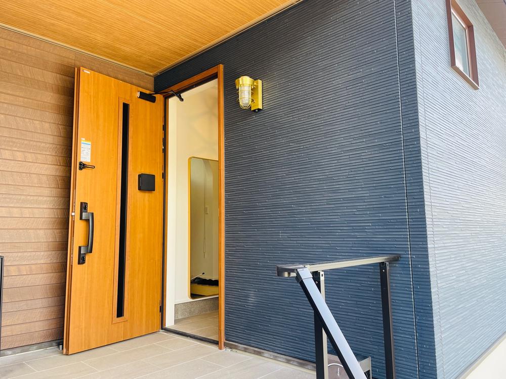籠を取り出さなくても開錠できるスマートキー設置。玄関ポーチが広く屋根が深いので雨の日も安心。宅配ボックスも設置済みです(2025年11月撮影)