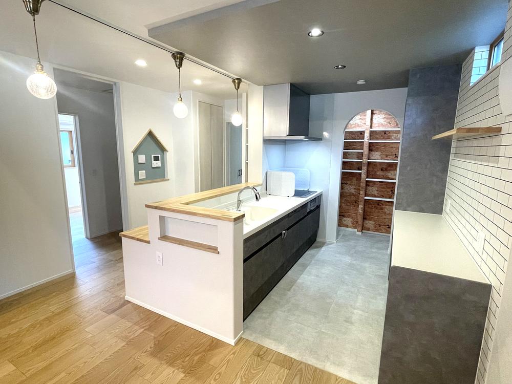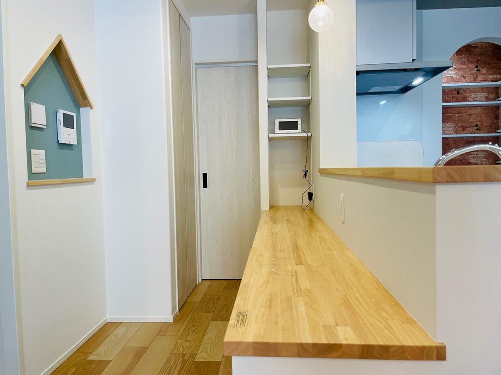 キッチンと向かい合わせのカウンター。リビング学習の勉強スペースとして、ちょっとした家事スペースとして重宝すること間違いなしです(2025年11月撮影)