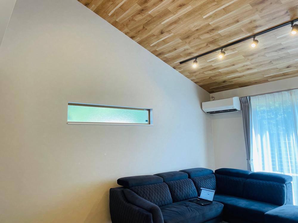 天井の高さを楽しめるのは平屋建ての特権。こちらのお宅も平屋ならではの高い勾配天井をリビングに擁し開放感と明るさが存分に楽しめる設計となっています(2025年11月撮影)
