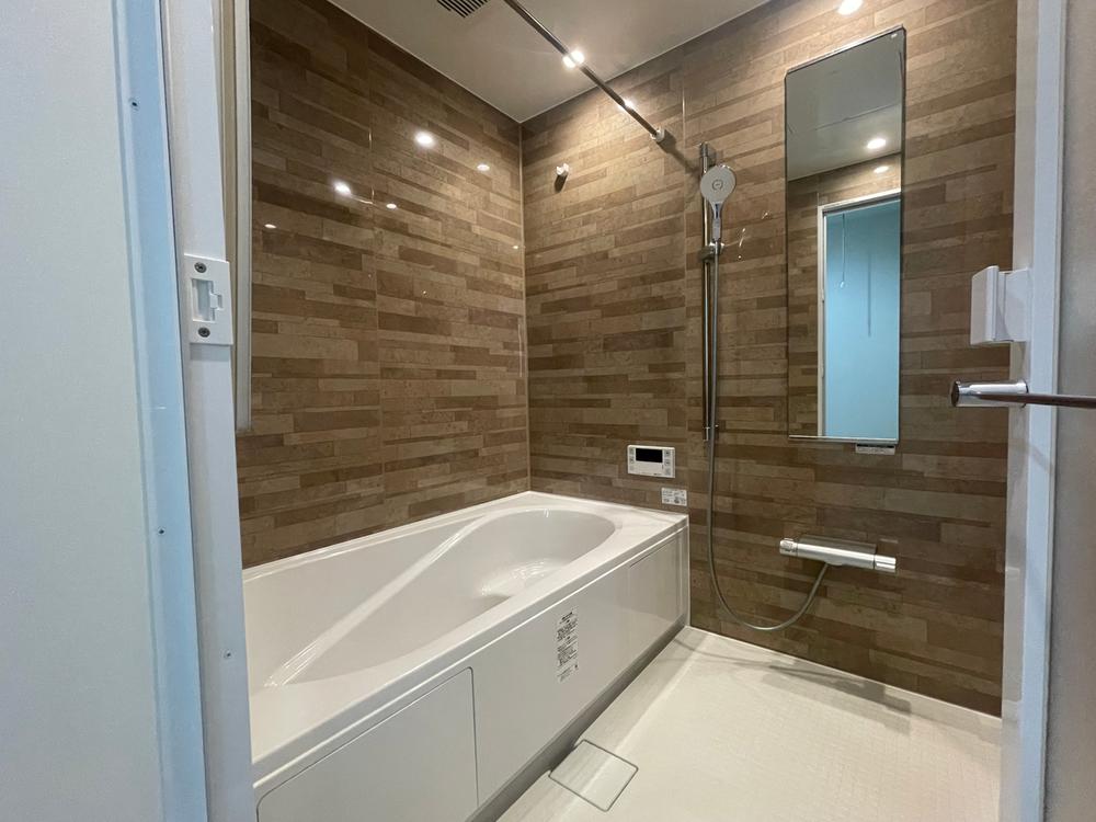 1618サイズの浴室・もちろん浴室暖房機能付きで寒い時期の入浴も安心です。入り口扉は開き戸で、床に溝がないためお掃除がとても簡単です(2025年11月撮影)