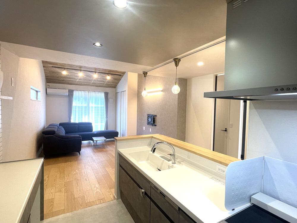 キッチンから眺めるリビングダイニング。セミオープンタイプで開放感があり、調理しつつもTVを見たり、リビングでくつろぐご家族とも自然に会話ができます(2025年11月撮影)