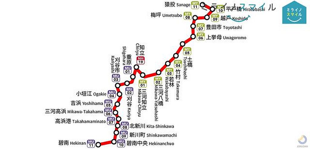 名鉄三河線 三河八橋駅 4.8km 名鉄三河線 若林駅 4.7km | ||||