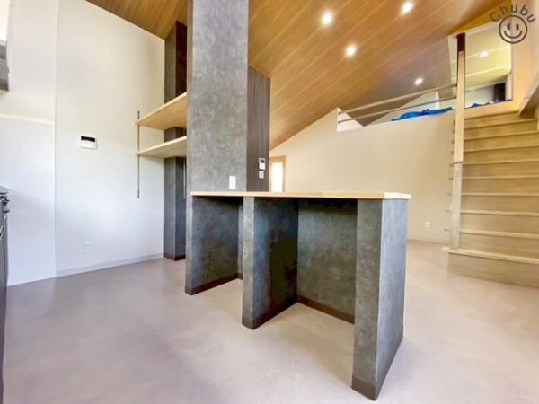 LDK キッチンと一体化したリビングなら家族みんなが自然と料理に参加したり、片づけたりしながらコミュニケーションがとれます。落ち着いた色でコーディネートのため、自然とみんなが集いたくなる空間です。