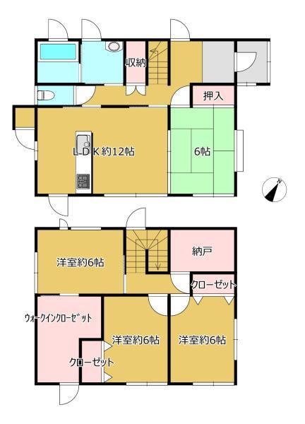 1729万円、4LDK+S、土地面積198.39㎡、建物面積107.64㎡ 【リフォーム済】間取りは4SLDKの二階建てです。納戸つきなので収納スペースもばっちり。家財道具が多い方でもお部屋を広くお使いいただけるお家です。