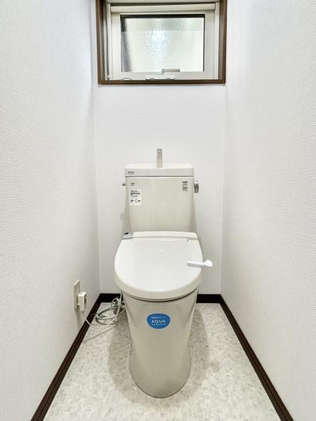 【リフォーム済】トイレを撮影しました。便座を交換しました。直接お肌に触れる部分なので、新品だと嬉しいですね。便座は温度調整ができるので、寒い冬場でも安心して利用できます。