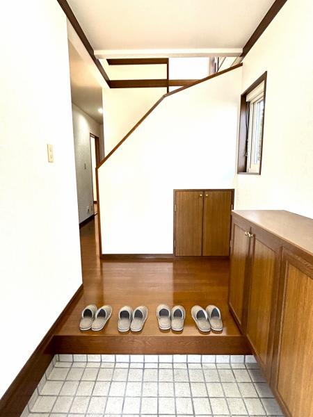 【リフォーム済】玄関ホールを撮影しました。天井・壁のクロスは張替えしました。玄関はお家の顔となる部分、お客様が最初に目にする場所だからこそ、第一印象が大切ですね。
