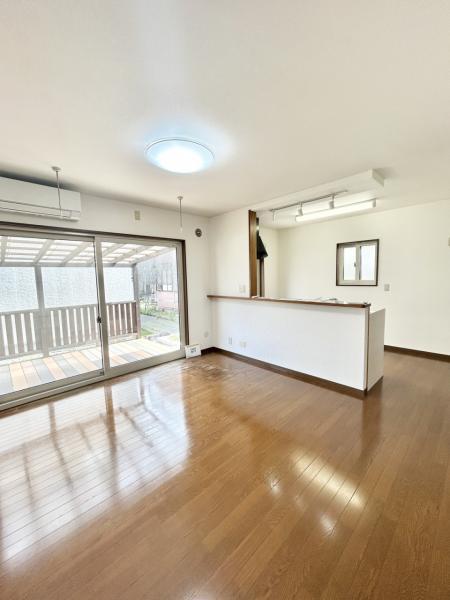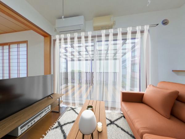 【リフォーム済】リビングにはパナソニック製のエアコンを新設しました。リモコンも付属していて操作は簡単です。暑い夏も快適に過ごせそうですね。
