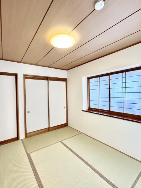 【リフォーム済】1階玄関わきにある和室です。畳は表替えを実施しました。イグサの香りに癒される、居心地の良いお部屋に仕上がりました。