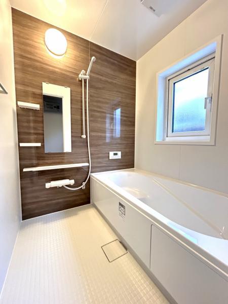【リフォーム済】ユニットバスを新品交換いたしました。1坪の広々した浴槽で、足を伸ばしてゆったり半身浴が楽しめます。毎日のお風呂が楽しみになりますね。