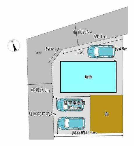 | 私道負担・道路 | - | 接道状況 | 西 6.0m 公道北 6.0m 公道 | ||