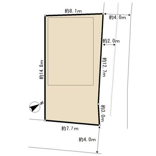 | 私道負担・道路 | 備考に記載 | 接道状況 | 北東 4.0m 公道南東 4.0m 私道 | ||