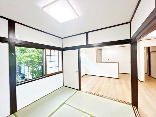 【内外装リフォーム済み】1階和室の様子を撮影いたしました。畳の表替え、障子張替え、クロス仕上げなどのリフォームを行います。和室が一部屋あると客間、子供部屋、くつろぎスペースと様々な使い方ができます。