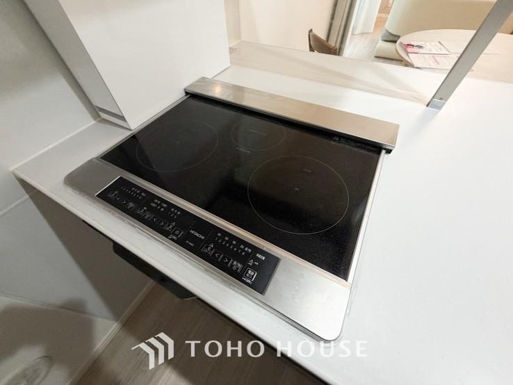 【IHクッキングヒーター】火を使わないので、吹きこぼれによる立ち消えの心配もなく、上昇気流も少ないので油の飛び散りが抑える事が出来ます。またフラットなトッププレートの為、汚れもサッとふくだけで簡単にお手入れをすることができます。
