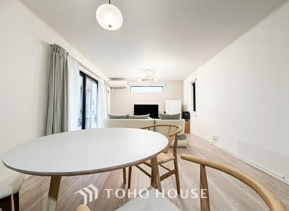 【快適な住空間】家族の暮らしに思いを馳せて、日常のワンシーンを表現したリビングダイニング。「ホワイトナチュラル」のテイストが、自然体で過ごせる心地良さを生み出しています。