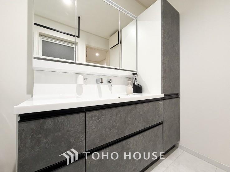 【身だしなみOK】シャワー機能付きの洗面台には使いやすい横長ボウル、スマートに収まる収納と充実しています。あわただしい朝の洗面タイムもばっちりです。