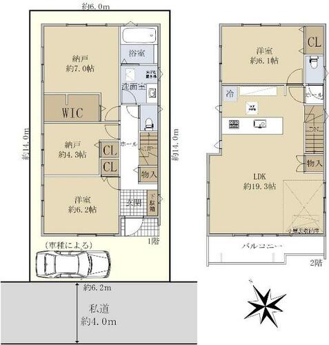| 私道負担・道路 | 備考に記載 | 接道状況 | 南西 4.0m 私道 接面6.2m | ||