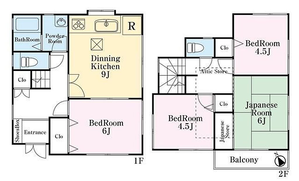 建物構造 | 木造/2階建 | 間取り詳細(帖) | ダイニングキッチン 9帖(1階)洋室 6帖(1階)洋室 4.5帖(2階)洋室 4.5帖(2階)和室 6畳(2階)DK9帖洋4.5帖洋4.5帖洋6帖 | ||