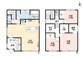 詳細を見る間取り6LDK◇趣味部屋・衣装部屋をご用意可能な6LDKの広いお家♪◇衣類・寝具類もたっぷり収めれる大容量WICが各階にあり♪◇ダイニングテーブル・ソファの配置もスムーズな一直線タイプのLDK♪◇外物置付き♪