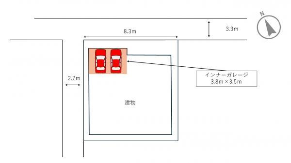 | 土地権利 | 所有権 | 私道負担・道路 | 無、北東3.3m幅、北西2.7m幅 | ||