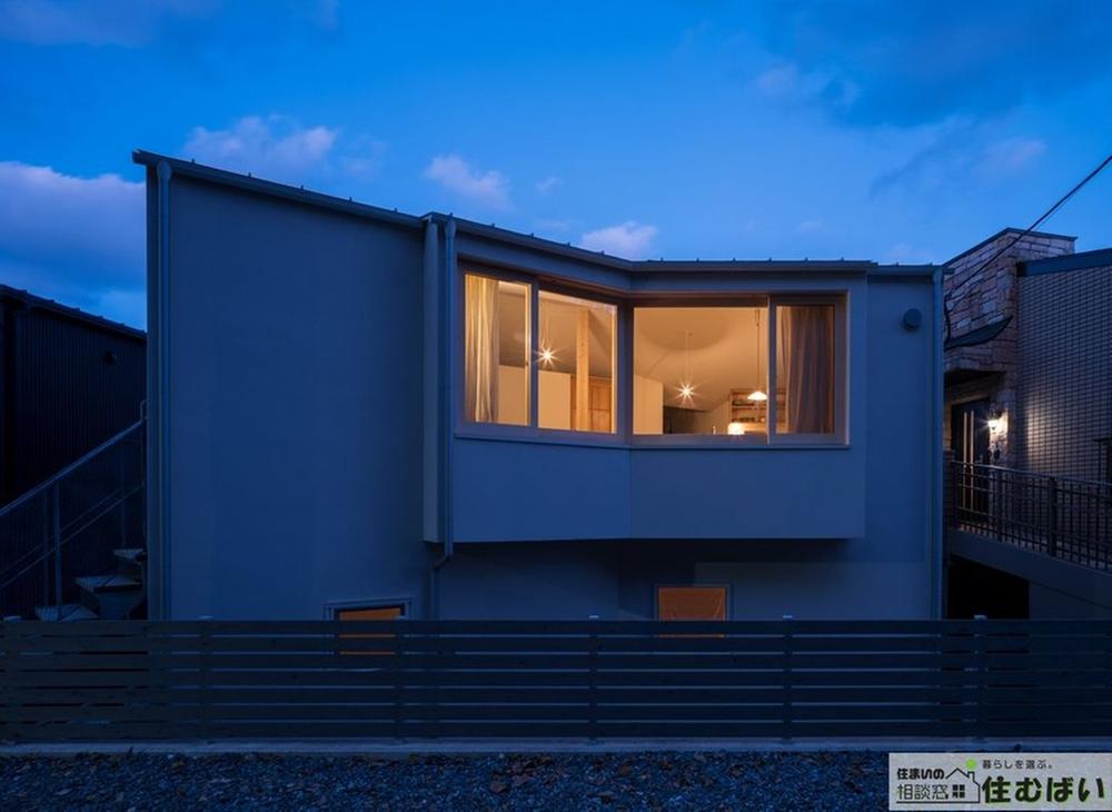 昼間とは異なる表情を見せる、静謐な夜の佇まい。窓から漏れる温かな光は、家族の絆の象徴。プライバシーに配慮しつつ、街並みに洗練された印象を与える外観デザインが、住まう人のこだわりを物語ります。