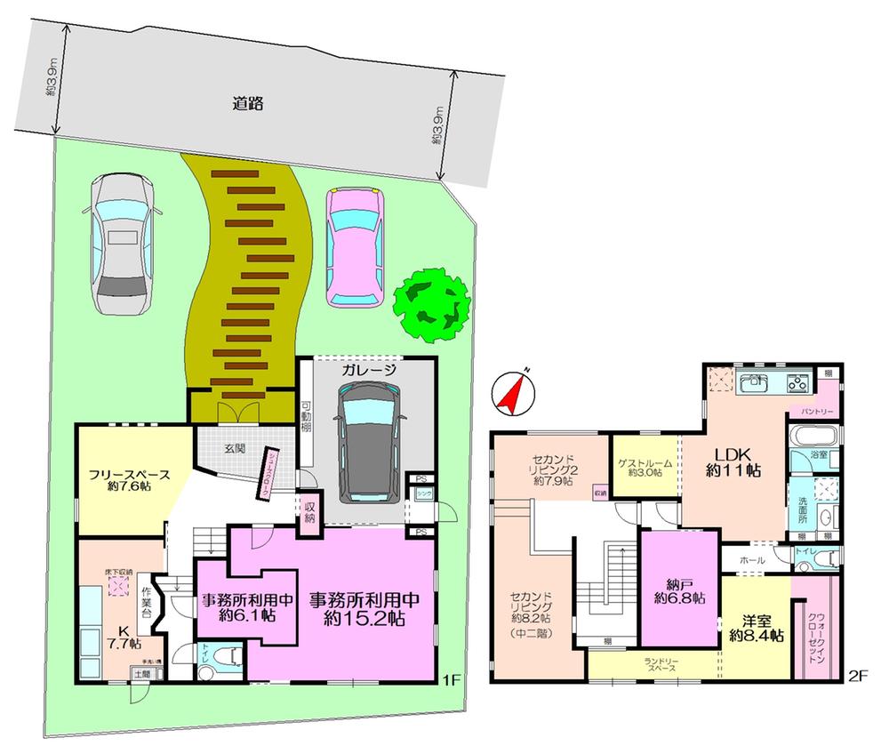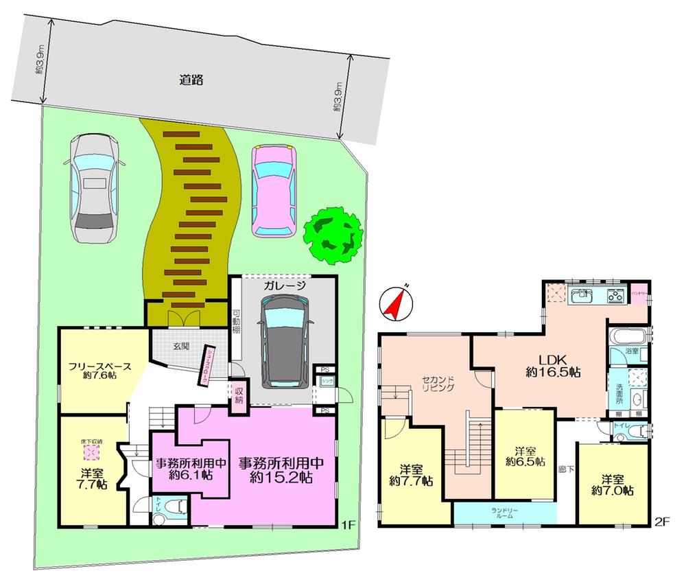土地権利 | 所有権 | 私道負担・道路 | 無、北西3.9m幅(接道幅13.4m) | ||