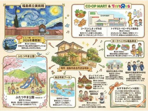 福島交通飯坂線 「美術館図書館前」駅 徒歩12分 | ||||