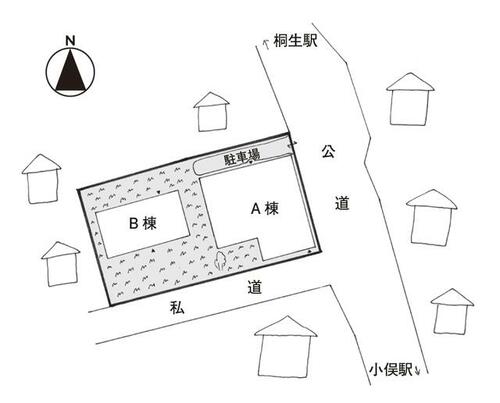 | 備考 | 母屋は建ぺい率を若干オーバーしているため、増築改築再建築には一定の制限があります。敷地の一部が公道に供している状態で、桐生市へ払下げない場合は、毎年4,118円の支払い義務が発生します。浸水想定区域0.5-3.0m未満地域です。・維持費等:固定資産税36,300円/年・都市計画税9,000円/年・道路負担料4,118円/年・A棟は外観の状態は良いためリフォーム工事を行い、B棟を解体することで駐車場や家庭菜園等、敷地を有効活用出来そうだ。南向きで日当たりも良いため、民泊貸家を行う投資用物件として取得する考え方もあるだろう。 | ||||