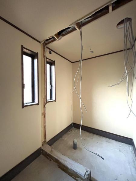 【リフォーム中写真11/16撮影】手前は洗面脱衣所に、奥はトイレに間取り変更を行います。トイレには窓がございませんが、換気扇を新設いたします。