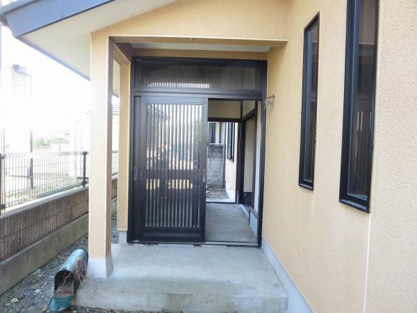 【リフォーム中写真11/16撮影】玄関です。玄関には屋根があるので、雨の日でも出入りがラクですね。玄関ドアは新品に交換します。