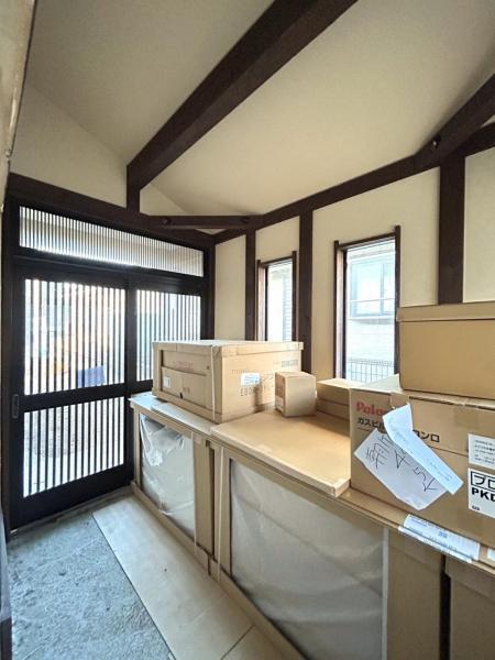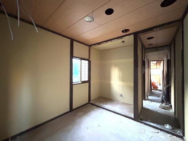 【リフォーム中写真11/16撮影】西側4帖のスペースは収納としてお使いいただけます。外への出入り口があるので、自転車置き場としても使えますね。